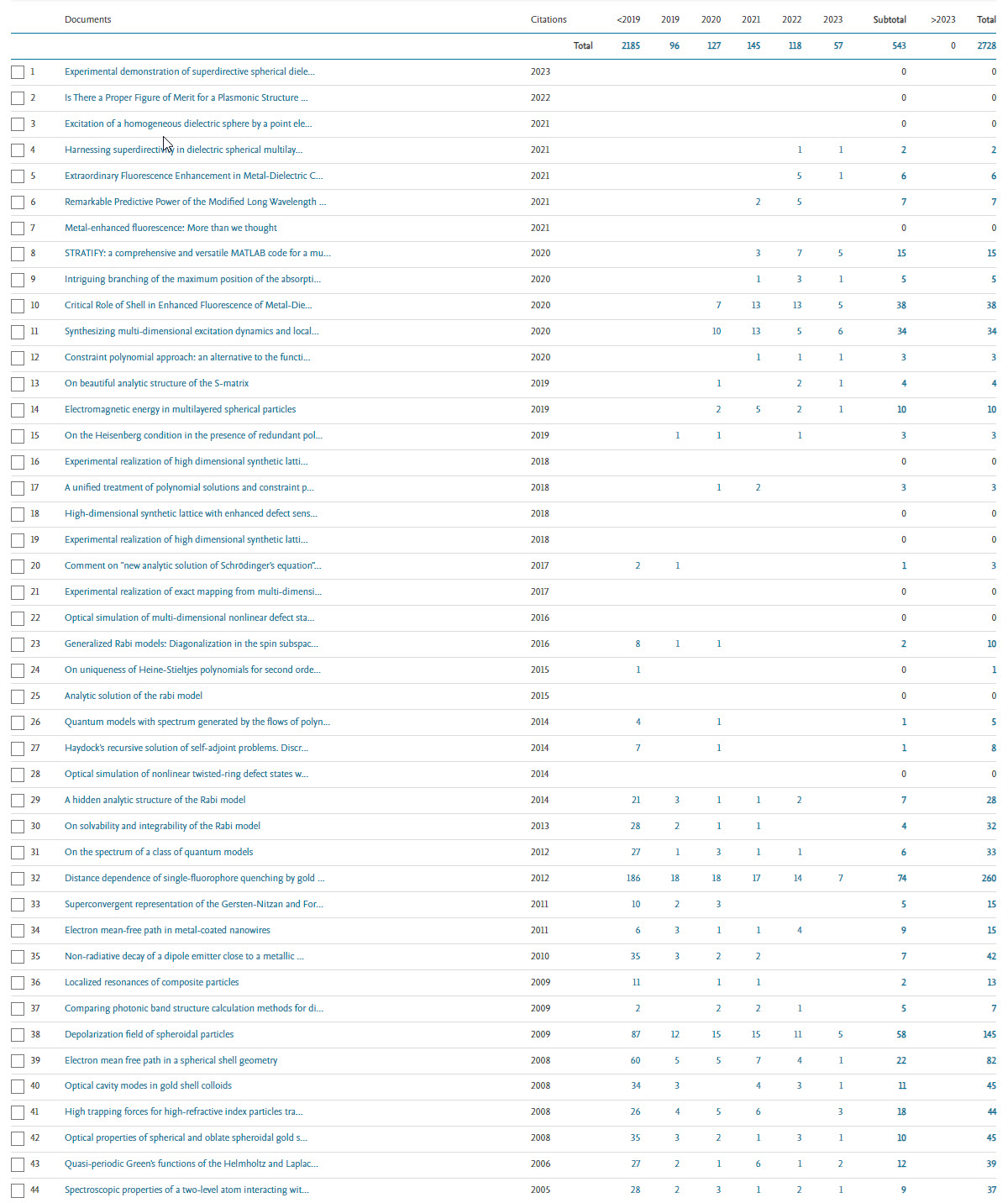 recorded nearly 3003 citations in over 2300 scientific papers since 1995 on my